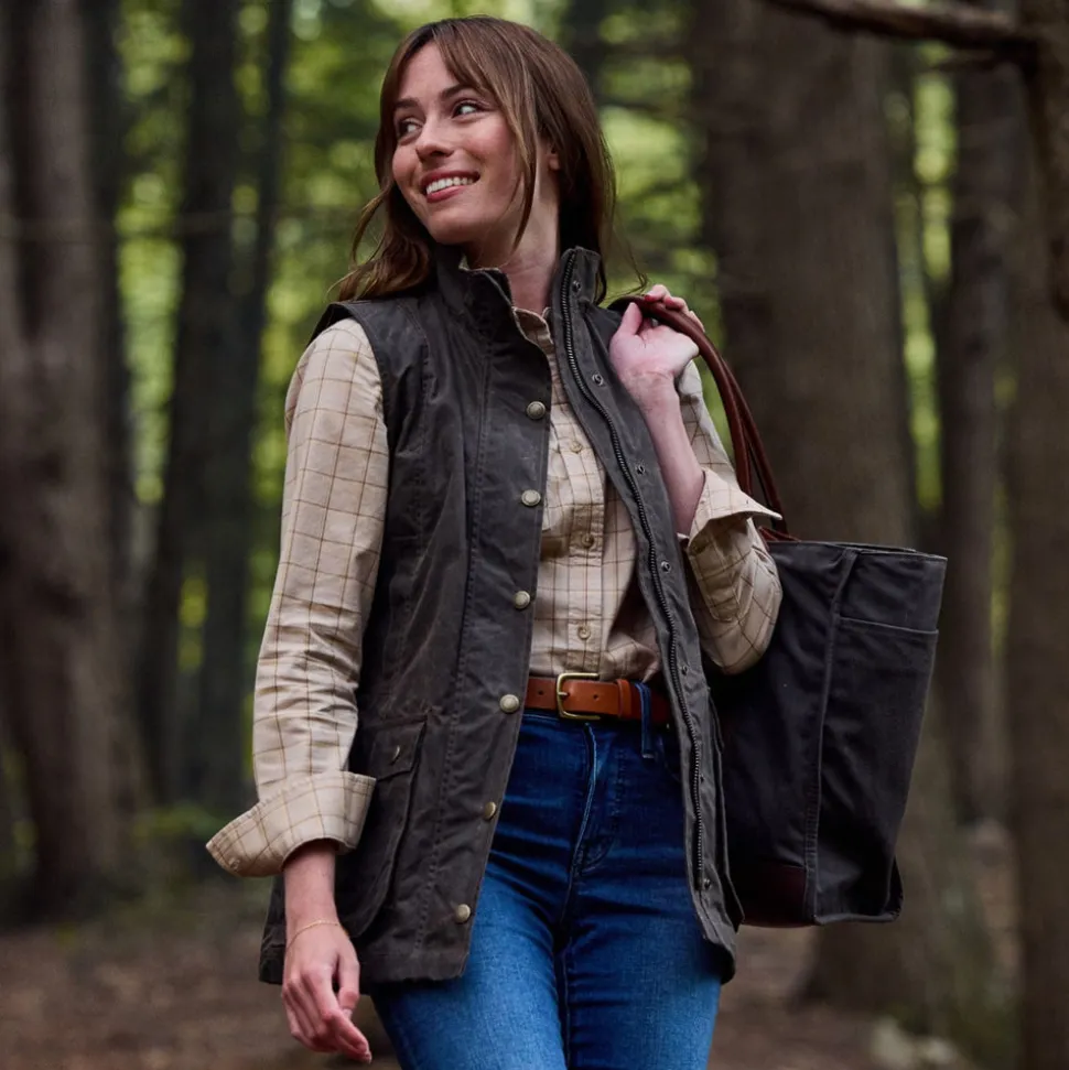 The Women’s Fairmont Vest marries style and functionality, combining a feminine silhouette with the classic look and durability of waxed cotton. Designed for three seasons, this waxed canvas vest for women has a durable, weatherproof 6 ounce waxed cotton shell that develops a rich patina over time. The Fairmont’s front and rear princess seams create a gently tapered waist that can be further cinched using the adjustable waist tabs. Rear side vents provide additional ease of wear.