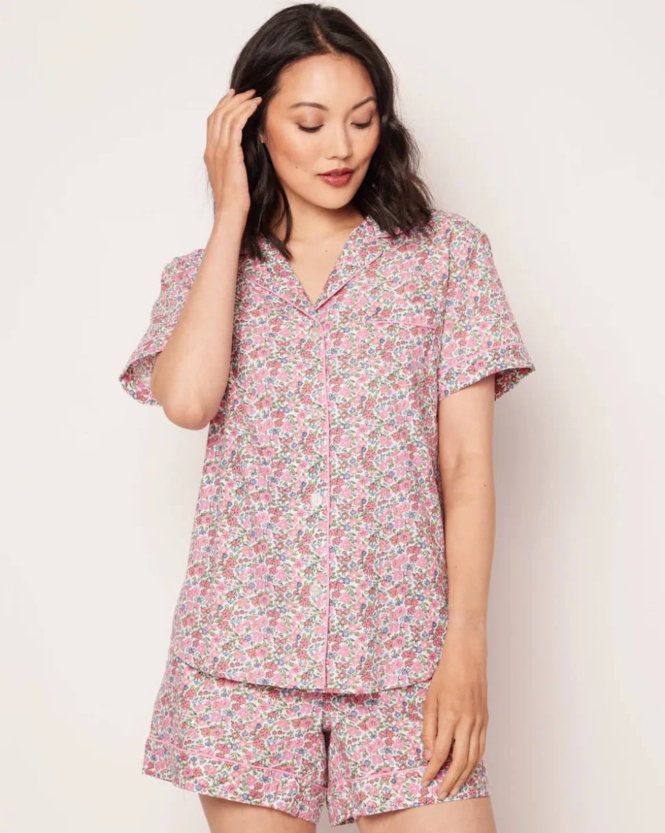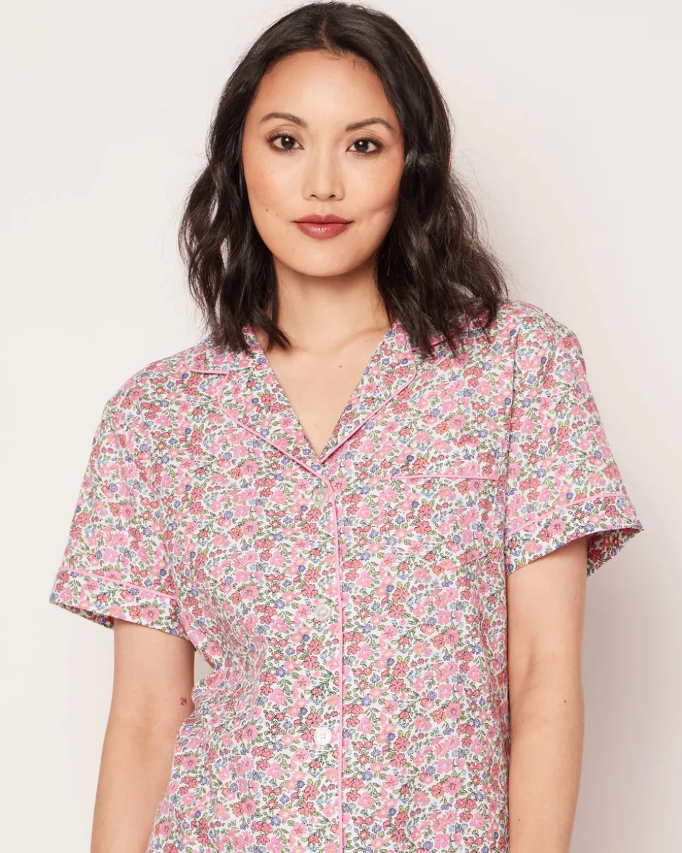 Petite Plume wishes you a “bonne nuit,” and in their luxury sleepwear, it’s hard not to oblige. Crafted in exquisite cotton, with the finest attention to detail, Petite Plume delivers the utmost comfort and sophistication. The Fleurs de Rose collection boasts hand-drawn illustrations of sweet florals, featuring a delightful palette of soft pinks, gentle purples, and soothing greens. Accented with pink piping and finished with pearl buttons, the Women’s Fleurs de Rose Short Sleeve Short Set is crafted from the finest quality cotton and brushed for added softness, and will get cozier with each wash.