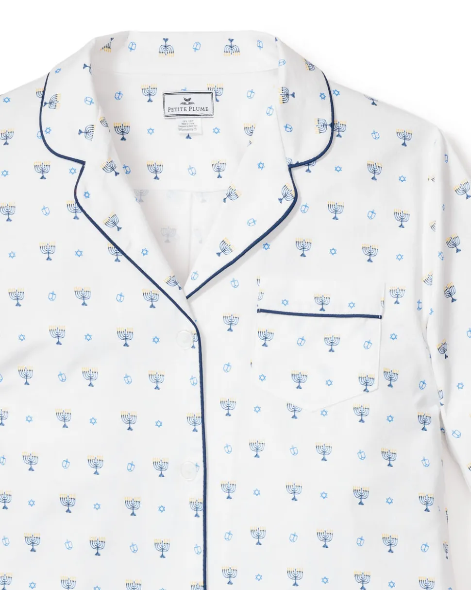 Petite Plume wishes you a “bonne nuit,” and in their luxury sleepwear, it’s hard not to oblige. Crafted in exquisite cotton, with the finest attention to detail, Petite Plume delivers the utmost comfort and sophistication. Accented with contrast piping and finished with a cute print, the lightweight Women’s Happy Hanukkah Pajama Set features specially brushed cotton so that every wash brings more coziness and better sleep.
