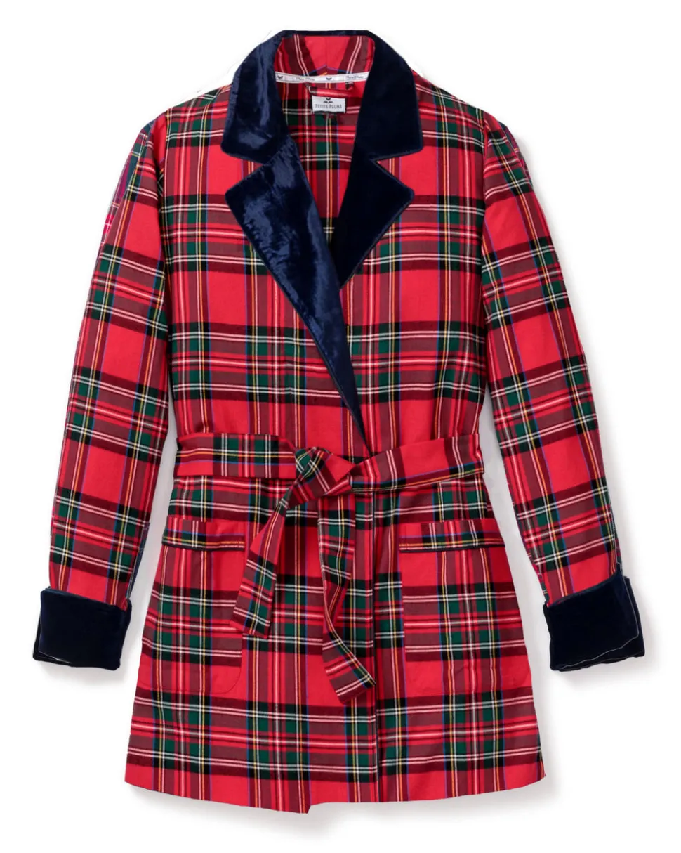 Petite Plume wishes you a “bonne nuit,” and in their luxury sleepwear, it’s hard not to oblige. Crafted in exquisite cotton, with the finest attention to detail, Petite Plume delivers the utmost comfort and sophistication. The classic Scottish plaid that has graced holiday traditions for decades, Imperial Tartan, is a celebration of the vibrant hues of the season: scarlet, navy, green and snowy white. One part bed-jacket, one part chic abbreviated bathrobe, the versatile Imperial Tartan Short Robe is the ultimate way to stay cozy. Featuring details like a lush velvet collar and cuff and matching waist sash, the flannel is lightweight yet luxurious.