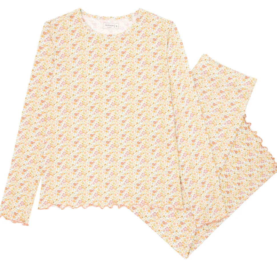 A family favorite for its clean lines and simple details, minnow creates pieces that are playful, polished, and thoughtfully designed for long days, sandy toes, and the wonderment of life on the shore. The Women’s Marigold Floral Pima Pajamas Set features a contrasting lettuce hem at the wrists and ankles with an easy, full leg. This set Is made from buttery soft pima cotton with a luxe feel and easy stretch, this set will take you from sleep to swim in a breeze.