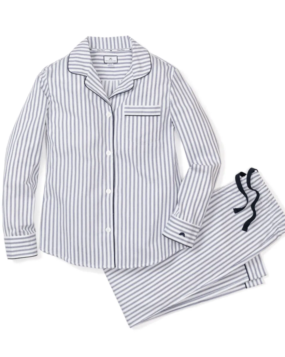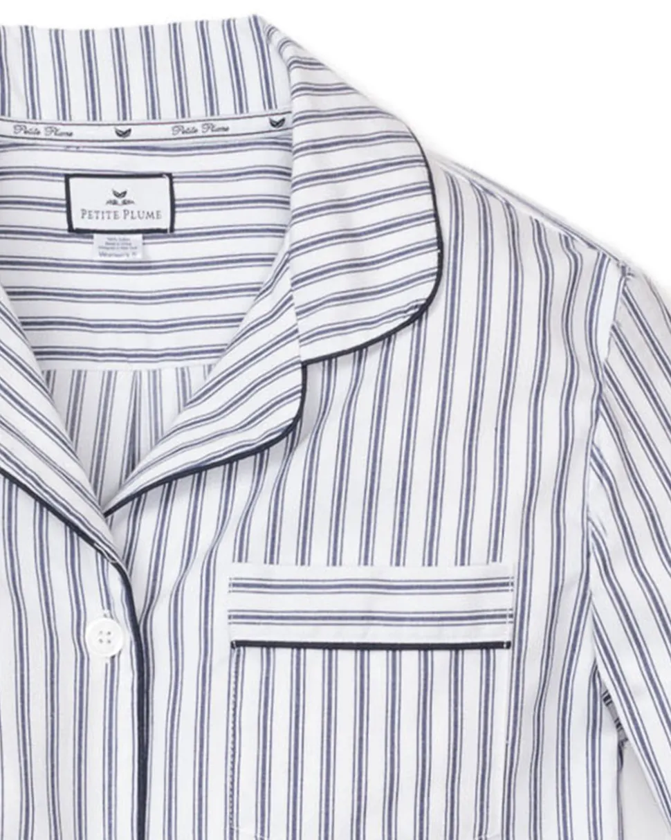 Petite Plume’s luxury sleepwear is a dream come true. Crafted in exquisite cotton, with the finest attention to detail, no chemicals, and classic silhouettes, Petite Plume delivers the utmost comfort and sophistication to every man, woman, and child who wears it. Made in a preshrunk, yarn-died fabric, accented with a timeless gingham, the Women’s Navy French Ticking Pajama Set is specially brushed so that every wash brings more coziness, and better sleeps. Just dreamy.