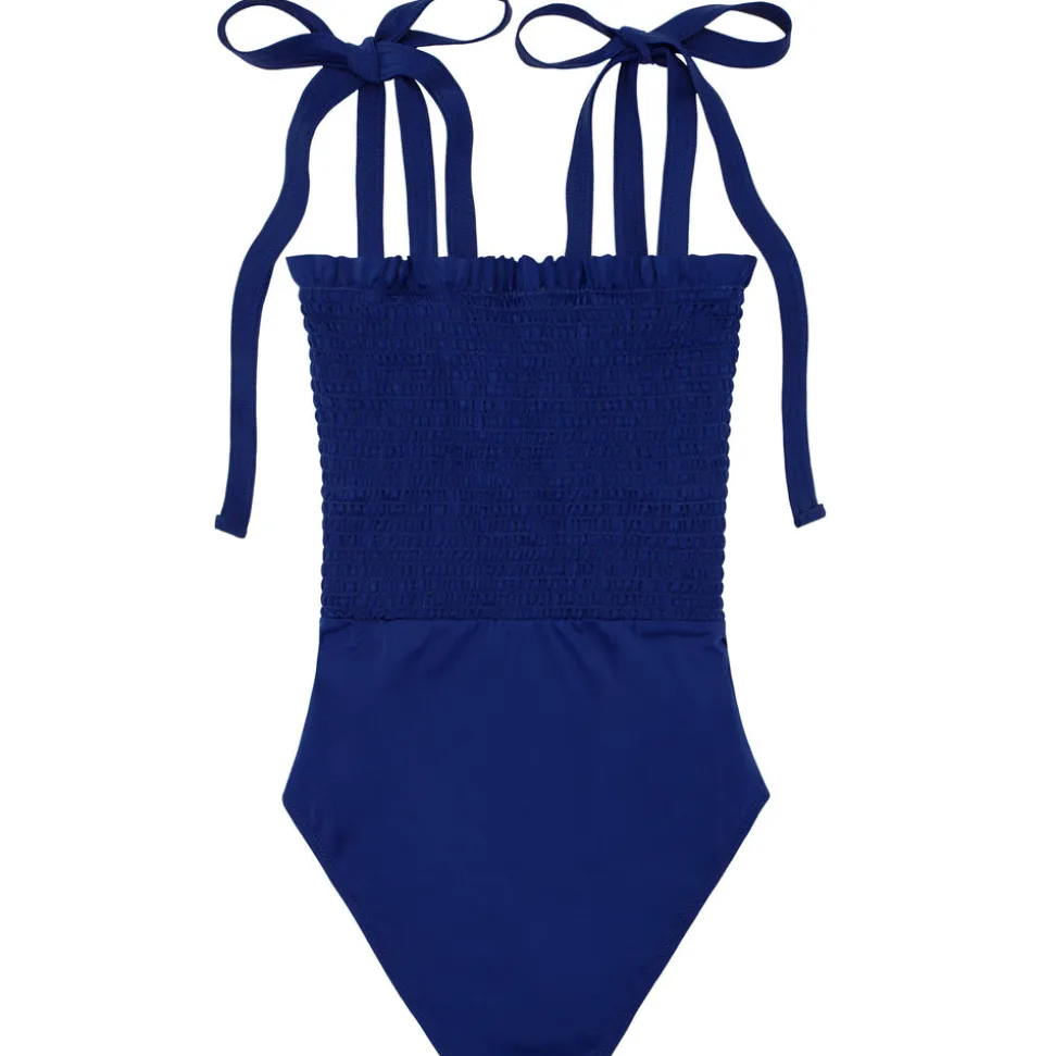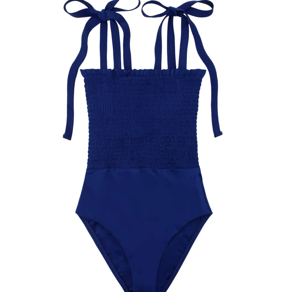 A family favorite for its clean lines and simple details, minnow creates pieces that are playful, polished, and thoughtfully designed for long days, sandy toes, and the wonderment of life on the shore. A twist on a classic silhouette, the Women’s Navy Smocked One Piece features thoughtful, hand-smocking details on a one-piece maillot. We love the flattering high leg cut, ruffled neckline, with feminine tie-up straps. Match with the kid version for both girls and boys.