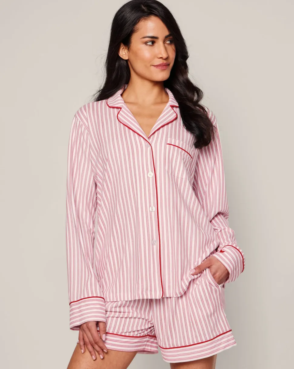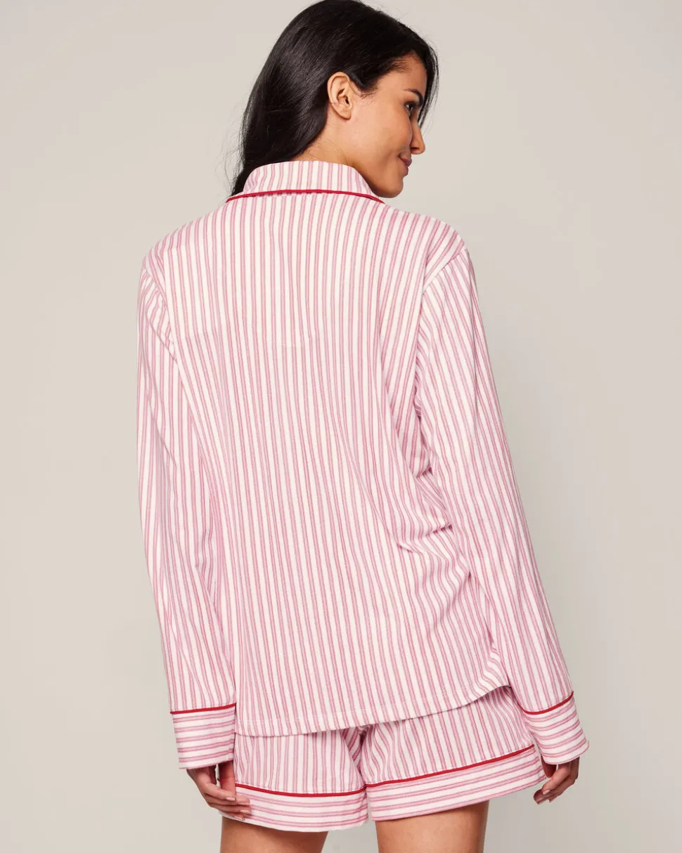 Petite Plume wishes you a “bonne nuit,” and in their luxury sleepwear, it’s hard not to oblige. Crafted from the softest 100% Pima Cotton with a gentle stretch, the Women’s Pima Long Sleeve Short Set in Antique Red Ticking is sewn from exquisite, supple jersey knit fabric that drapes beautifully and continues to soften with each washing. Buttery and smooth, yet breathable, this collection is yarn-dyed to prevent fading and is destined to become a fixture of your soothing bedtime ritual.