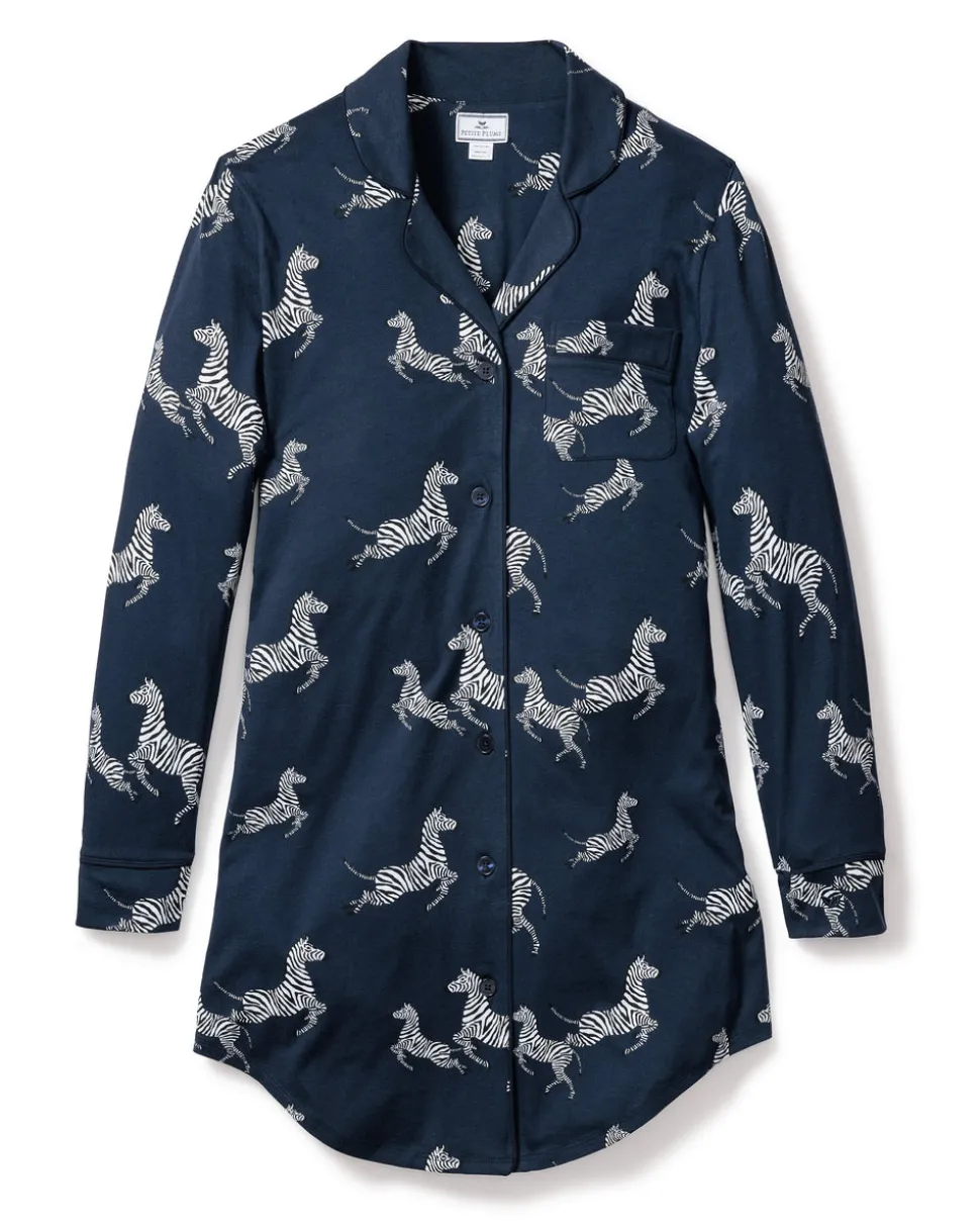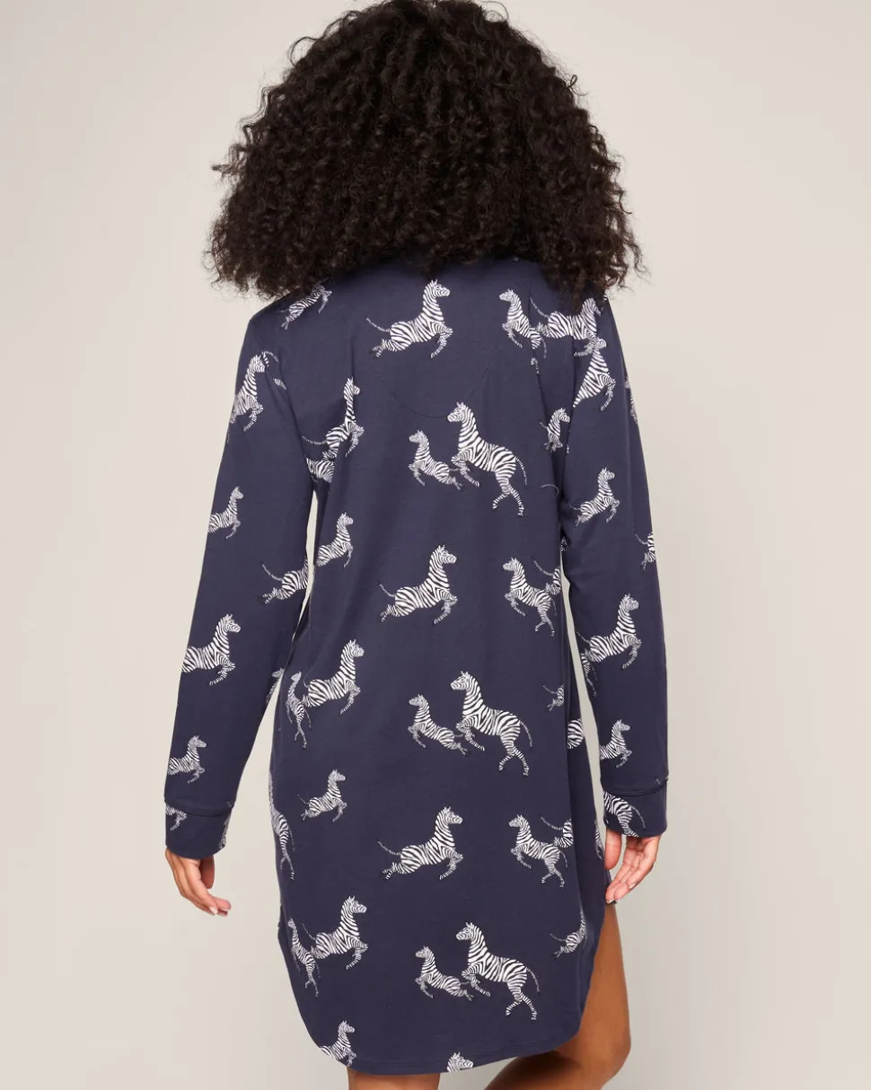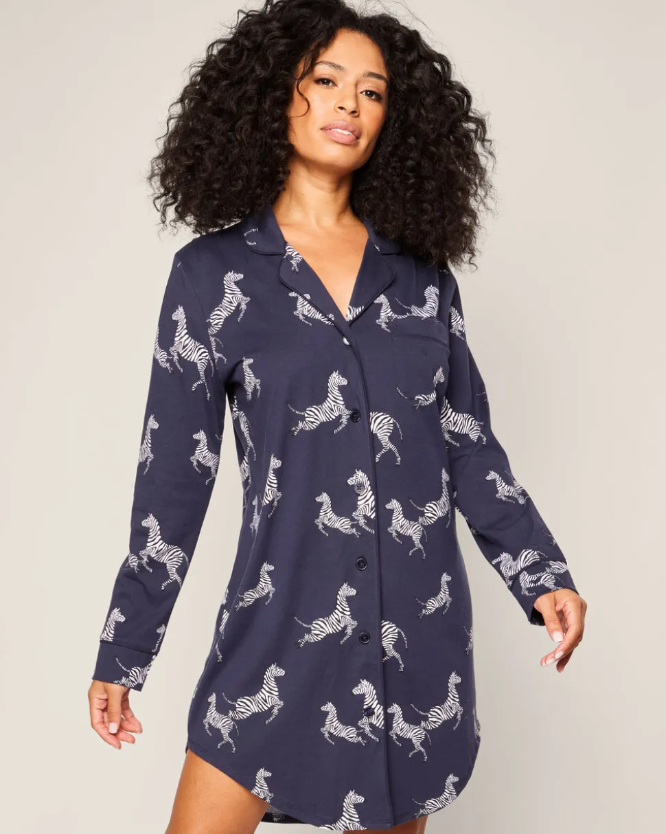 Petite Plume wishes you a “bonne nuit,” and in their luxury sleepwear, it’s hard not to oblige. Crafted in exquisite cotton, with the finest attention to detail, Petite Plume delivers the utmost comfort and sophistication. The Women’s Pima Nightshirt in Zèbre de Nuit is sewn from this exquisite fabric: luxurious, supple jersey knit pajamas that drape beautifully and continue to soften with each washing. These elegant pajamas were made with a fun printed design. This classic pattern is here to stay, with no frills just clean, crisp lines. This classic pajama set is accented with navy piping and finished with pearl buttons.