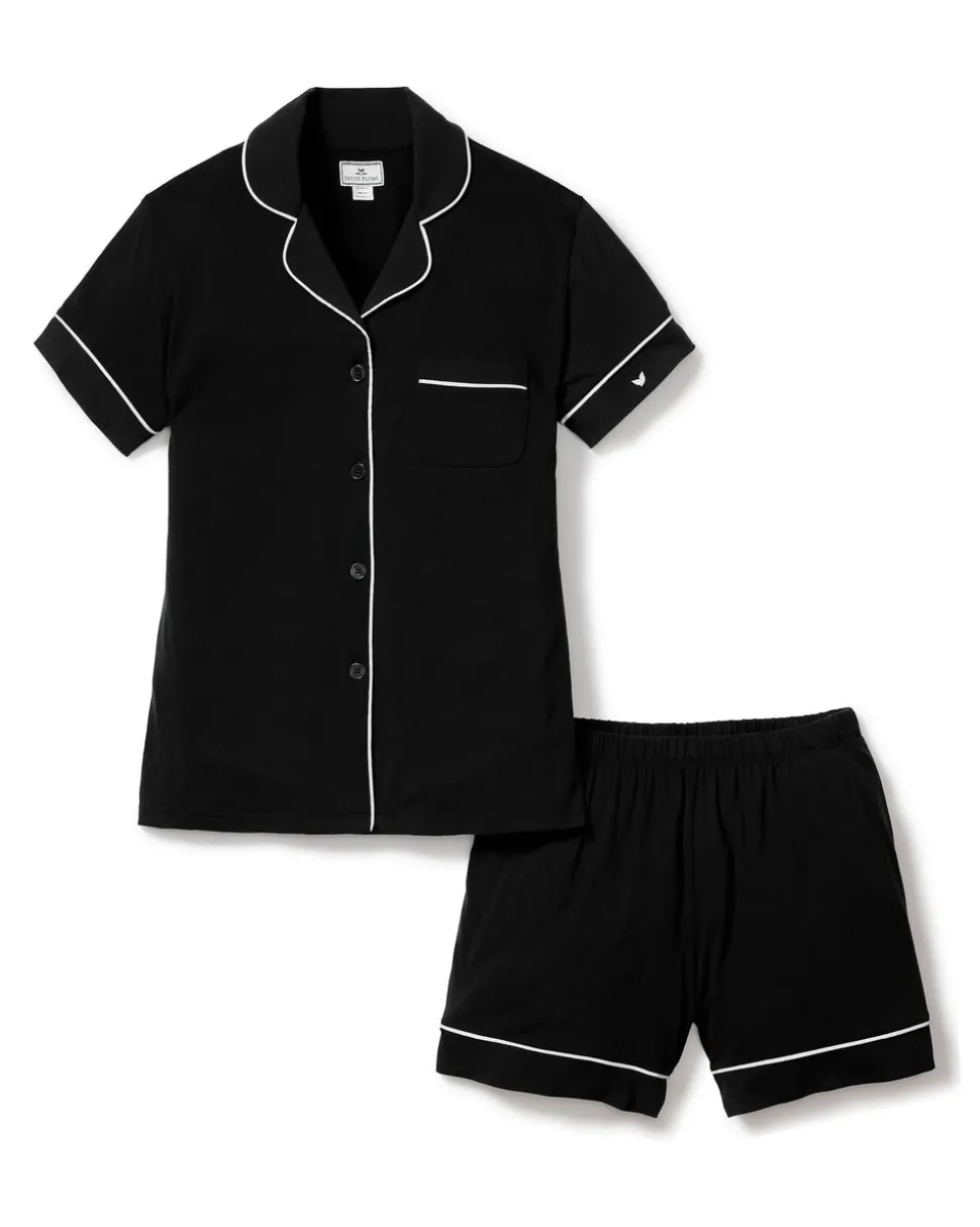 Petite Plume wishes you a “bonne nuit,” and in their luxury sleepwear, it’s hard not to oblige. The Women’s Pima Short Sleeve Short Set in Black features a classic pattern that is here to stay, with no frills just clean, crisp lines. Arriving in a flirty, comfortable mid-thigh length short, the Pima Collection is sewn from this exquisite fabric: luxurious, supple jersey knit pajamas that drape beautifully and continue to soften with each washing. Buttery and smooth yet breathable, too, this collection is yarn-dyed to prevent fading and is destined to become a fixture of your soothing bedtime ritual.