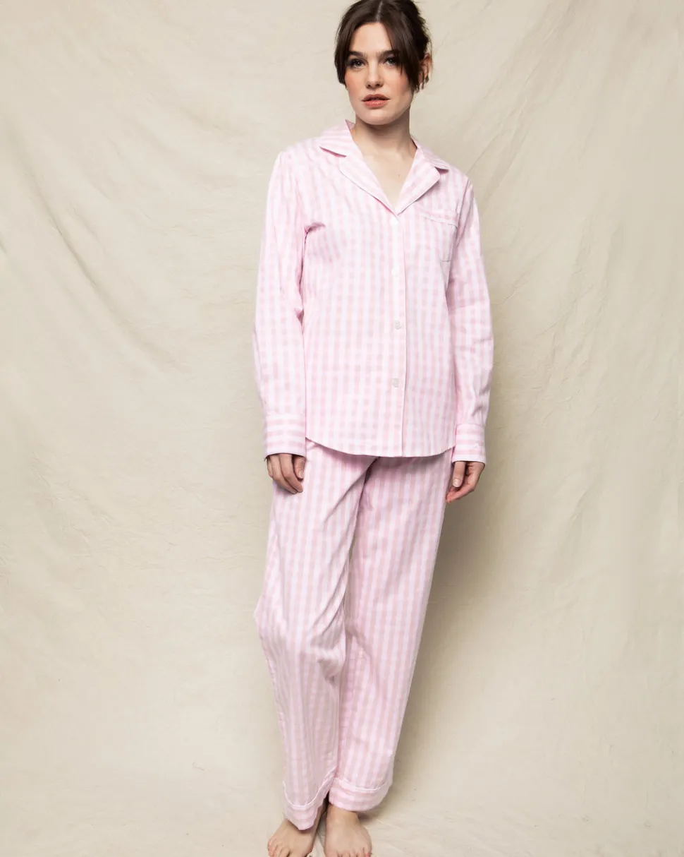 Petite Plume’s luxury sleepwear is a dream come true. Crafted in exquisite cotton, with the finest attention to detail, no chemicals, and classic silhouettes, Petite Plume delivers the utmost comfort and sophistication to every man, woman, and child who wears it. Made in a preshrunk, yarn-died fabric, and accented with a timeless gingham pattern, the Women’s Pink Gingham Pajama Set is specially brushed so that every wash brings more coziness, and better sleeps. Utterly dreamy.