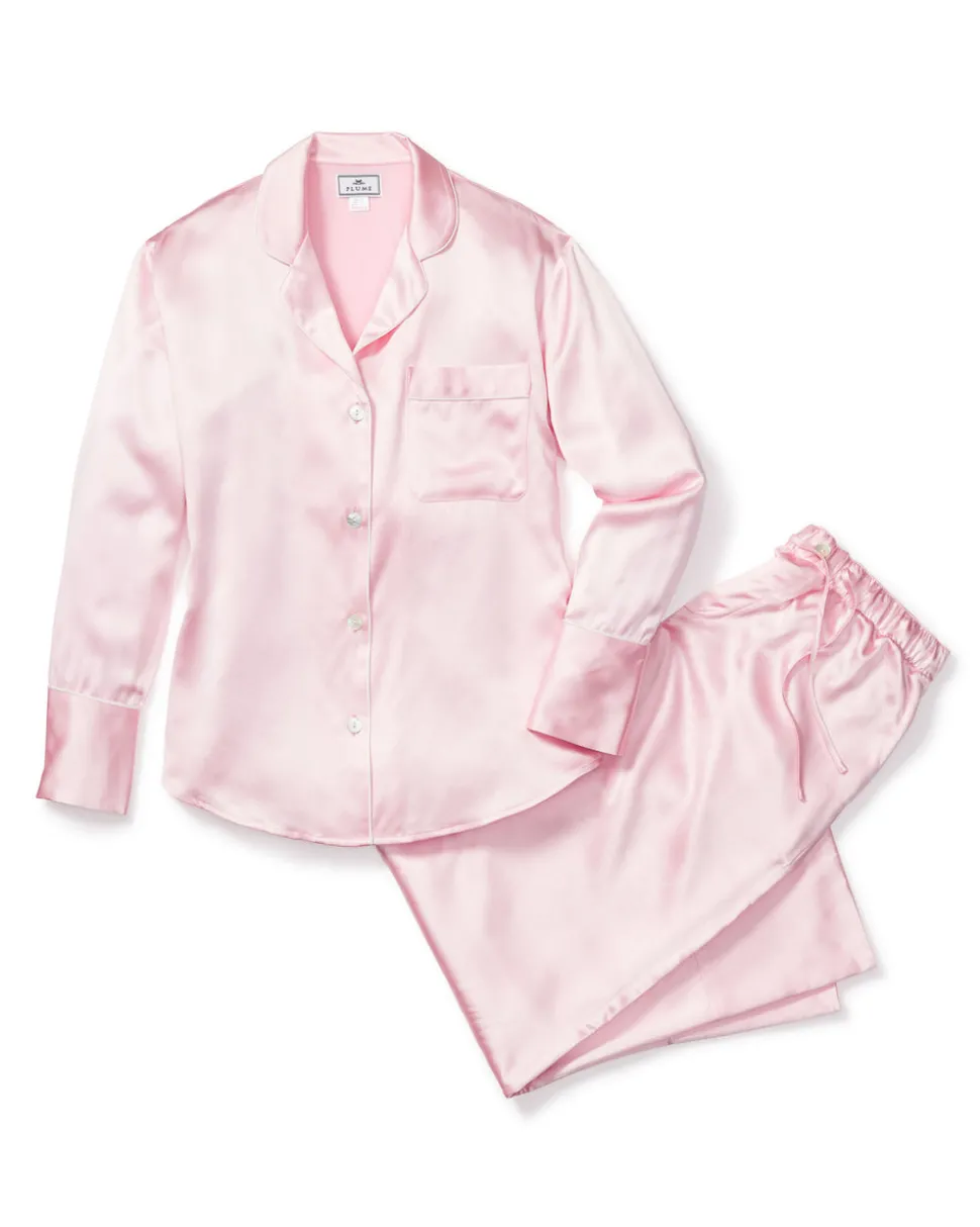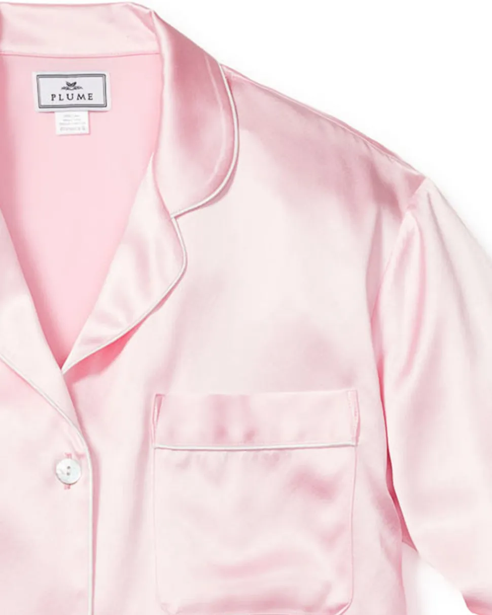 Petite Plume’s luxury sleepwear is a dream come true. Crafted in exquisite cotton, with the finest attention to detail, no chemicals, and classic silhouettes, Petite Plume delivers the utmost comfort and sophistication to every man, woman, and child who wears it. Made in unbelievably luxurious silk, with a wider leg, and accented with contrast piping, the Women’s Pink Silk Wide Cuff Pajama Set ensures the ultimate softness, and better sleeps. Simply dreamy.