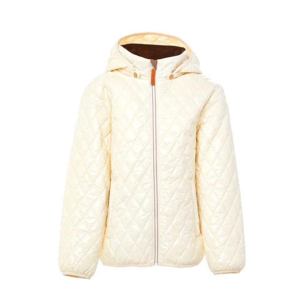 Shell: 100% nylon ripstop. Lining: 100% polyester. Insulation: 100% recycled polyester. PrimaLoft® insulation for warmth without bulk. Durable water-repellent finish. Corduroy-lined stand collar. Removable hood. Shine finish. Elastic at waist and wrists. Premium YKK® zippers with striped tape detail. Wind flap for extra warmth. Zippered pockets. Rhombus quilted pattern. Smooth polyester lining. Standard 100 by OEKO-TEX®. Mommy & me matching available in women’s and kids’ sizes.