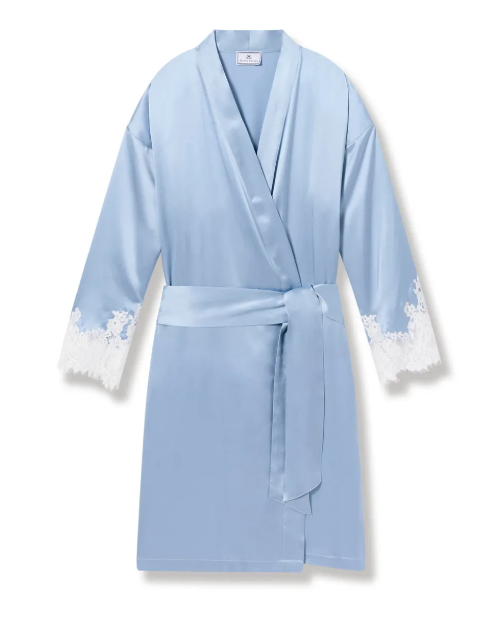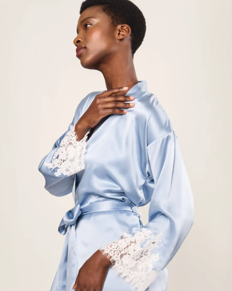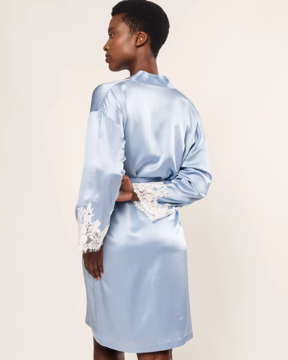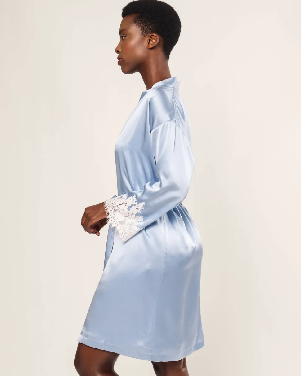 Petite Plume wishes you a “bonne nuit,” and in their luxury sleepwear, it’s hard not to oblige. And exclusive collaboration with Over The Moon, the Women’s Silk Lace Robe in Periwinkle is crafted from the softest 100% Mulberry Silk, and boasts lace accents at the cuffs. Once versatile and serene, this quintessential piece is about as effortless and comfortable as luxury sleepwear gets, and will get even softer over time.