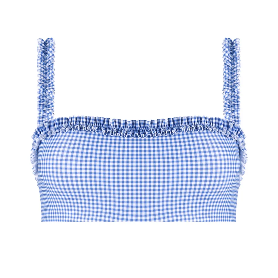 A family favorite for its clean lines and simple details, minnow creates pieces that are playful, polished, and thoughtfully designed for long days, sandy toes, and the wonderment of life on the shore. The Women’s Sky Blue Gingham Bandeau Bikini Top features a checkered material that is sourced from Italy. Double-lined with a lightly padded shelf bra, you will have plenty of support to play and splash in the sun all day long.