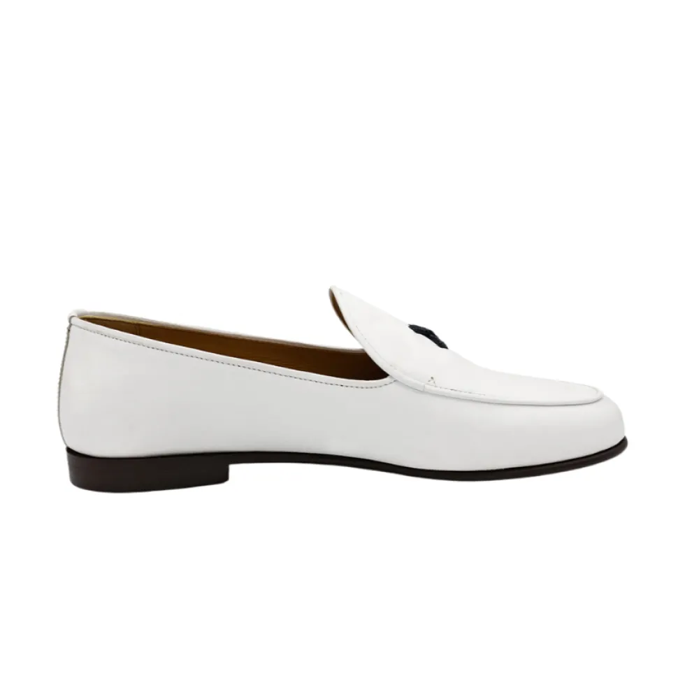 Handmade in Italy. Italian leather with navy X and red stitching on the heel. Leather lining and cushioned leather footbed. Rubber sole for traction and all-day comfort.