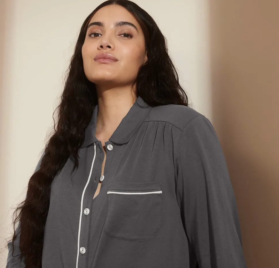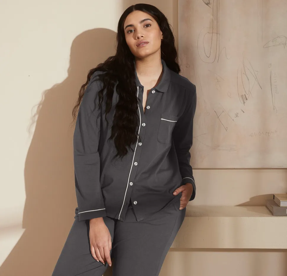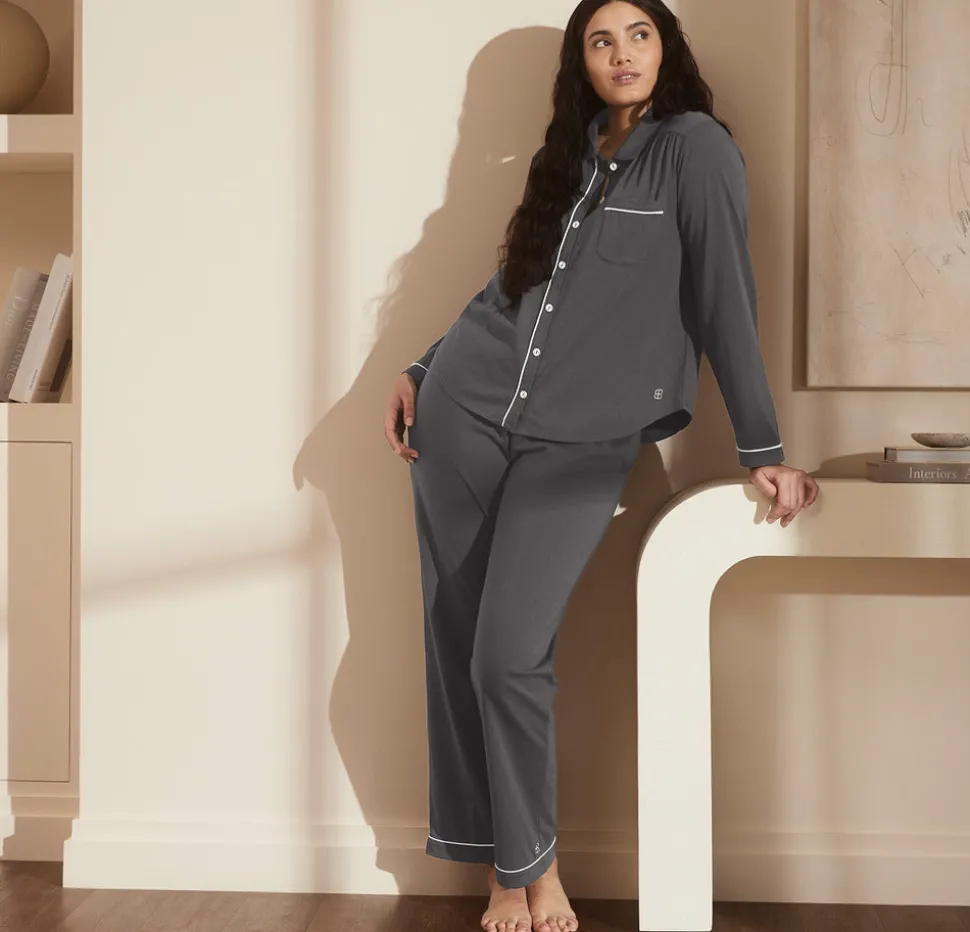 Since 2014, Boll & Branch has redefined the textiles industry, setting a higher standard in craft and care. Each thoughtfully made essential brings extraordinary comfort to your home, beginning at the source with the finest natural materials. The Women’s Soft Knit Long Sleeve & Pants Pajama Set in Night combines the familiar ease of your favorite lived-in T-shirt with an elevated finish. Crafted from the highest quality 100% organic cotton threads, the knit fabric offers natural softness and a gentle stretch that never clings. Enhanced with the brand’s Luxury Soft-Wash—a process that uses natural enzymes to relax the fibers—this set grows even more sumptuous with every wear.