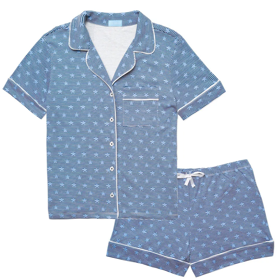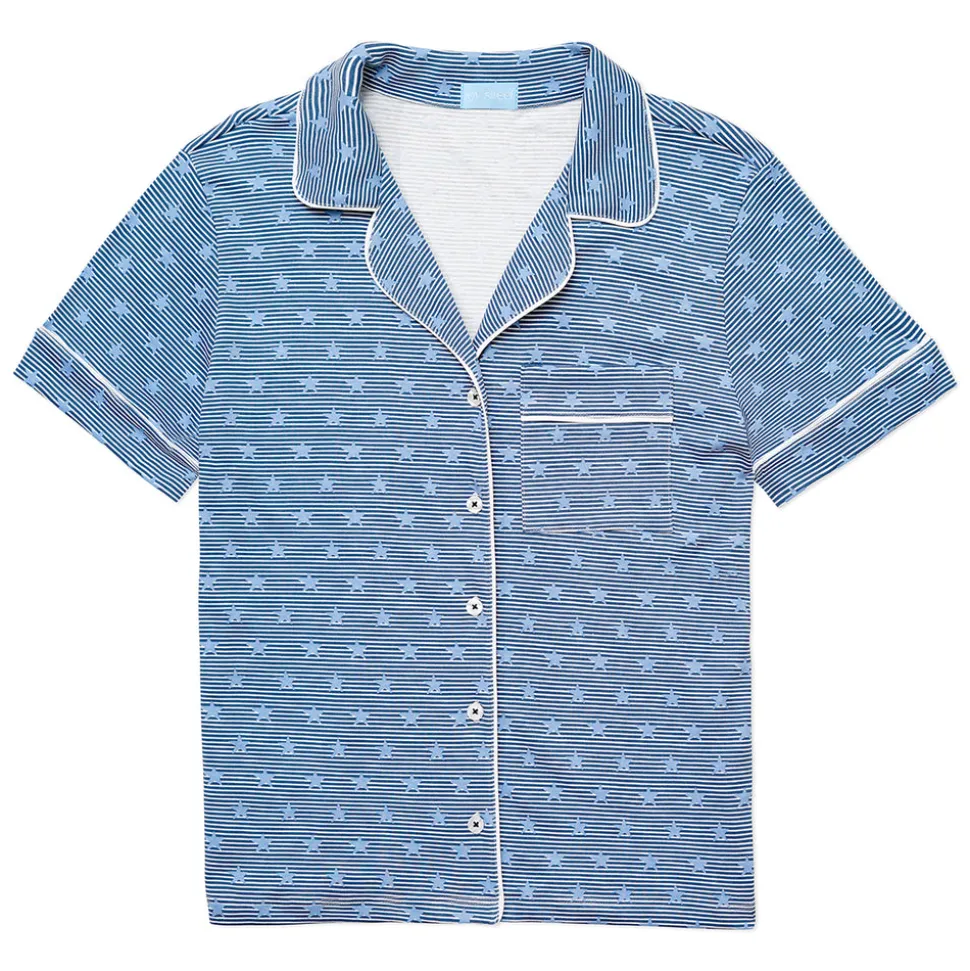 Designed with a mom’s love and made with care, Boston-based Joy Street produces small-batch kids clothes that look classic from afar, but delight in details. Crafted in luxurious 100% Peruvian pima cotton in a female-run factory, every print is hand-drawn by the brand’s founder, a new mom who prizes fit and quality above all else, and isn’t afraid of a little fun. The Women’s Stars & Stripes Button Front Short Pajama Set in Navy features a charming patriotic print. With red stripe piping, a button front top with collar, and an elastic waistband with drawstring, they deliver style and comfort.