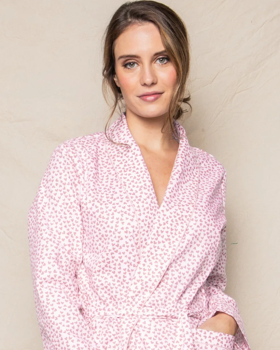 Petit Plume’s luxury sleepwear is a dream come true. Crafted in exquisite cotton, with the finest attention to detail, no chemicals, and classic silhouettes, Petite Plume delivers the utmost comfort and sophistication to every man, woman, and child who wears it. Made in a preshrunk, yarn-died fabric, and decorated with a lovely heart pattern, the Women’s Sweethearts Robe is specially brushed so that every wash brings more coziness. Perfect for early mornings, bedtime, or really anytime.