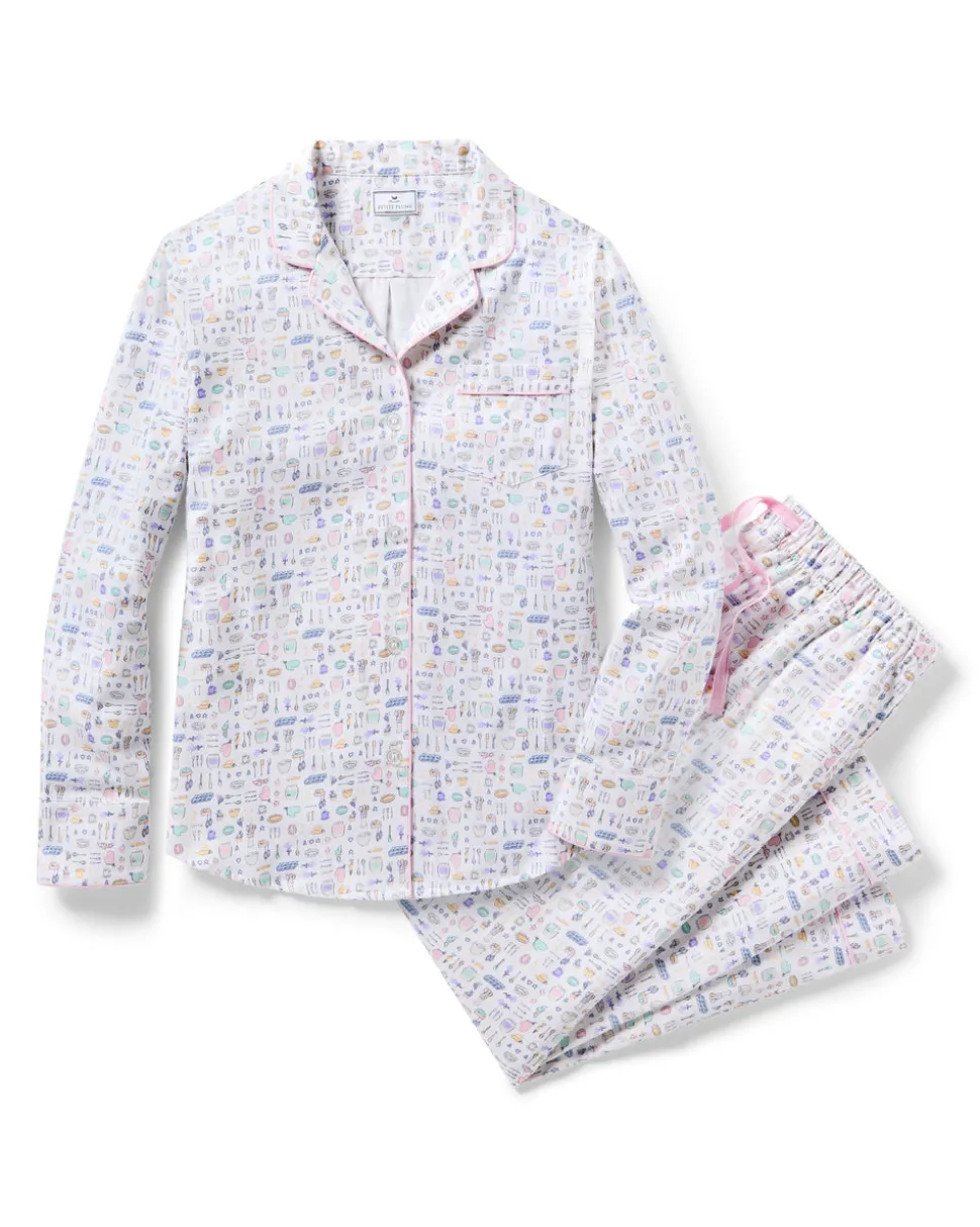 Petite Plume wishes you a “bonne nuit,” and in their luxury sleepwear, it’s hard not to oblige. This hand-illustrated print has all the tools you would need for perfecting pastries, cookies, and gingerbread houses. This classic sleep shirt has a roomy fit but looks crisp thanks to details like the classic collar and elegant shirt-tail hem. Premium 100% cotton twill makes this design crisp, comforting, and cozy. The moisture-wicking weave is yarn-dyed to help prevent fading. Cotton twill becomes more buttery with every wash.