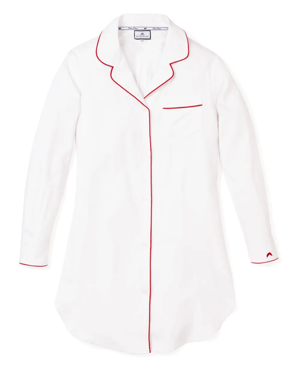 Petit Plume’s luxury sleepwear is a dream come true. Crafted in exquisite cotton, with the finest attention to detail, no chemicals, and classic silhouettes, Petite Plume delivers the utmost comfort and sophistication to every man, woman, and child who wears it. Made in a preshrunk, yarn-died fabric, and decorated with a perfect red trim and pearl buttons, the Women’s White Nightshirt with Red Piping is specially brushed so that every wash brings more coziness and better sleep.