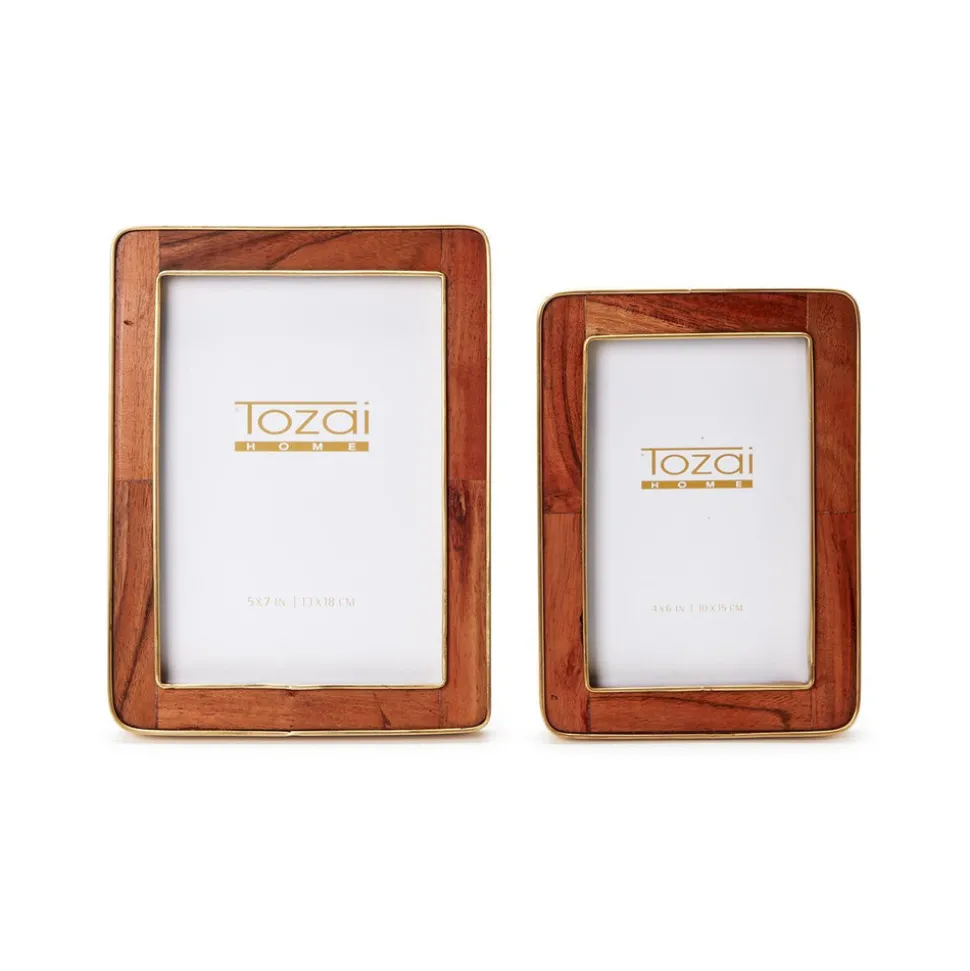 Started in a couple’s Westchester home in 1969, Two’s Company is a single destination for a wide range of stylish contemporary gifts, homewares, and accessories. From chinoiserie dish collections to accents for the sofa, the brand’s offerings are once sophisticated and accessible, making it an ideal gifting source for weddings, babies, new homes, birthdays, and more. Blending the essence and richness of mango wood with a warm brass border, the Wood Rounded Edge with Brass Photo Frames, Set of 2 adds elegance and comfort to any room in which it stands.
