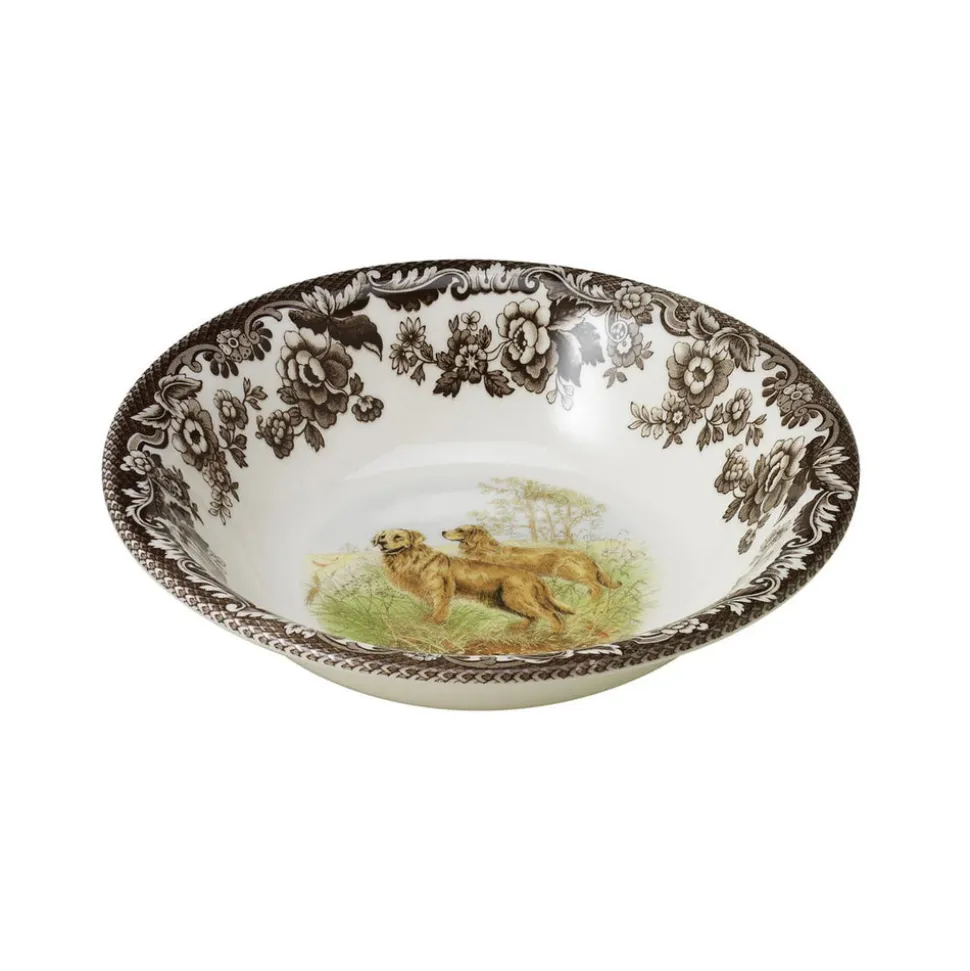 Founded by Josiah Spode in 1770, Spode has been producing the finest ceramics and celebrated designs in Stoke-on-Trent, England for 250 years. Spode is the authority on great British style bringing heritage style to modern day life. Woodland’s designs are rooted in the traditions of hunting for game and its elaborate presentation on the table. Central to the charm of the pattern are the striking studies of different animals framed by the British Flowers border which dates back to 1831. This Woodland Dogs Ascot Cereal Bowl features a Golden Retriever. Casually formal for every day living, this set is dishwasher and microwave safe.