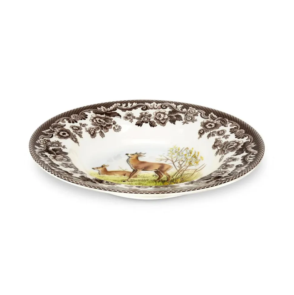 Founded by Josiah Spode in 1770, Spode has been producing the finest ceramics and celebrated designs in Stoke-on-Trent, England for 250 years. Spode is the authority on great British style bringing heritage style to modern day life. Woodland’s designs are rooted in the traditions of hunting for game and its elaborate presentation on the table. Central to the charm of the pattern are the striking studies of different animals framed by the British Flowers border which dates back to 1831. This Woodland Soup Plate features a Deer. Casually formal for every day living, this set is dishwasher and microwave safe.
