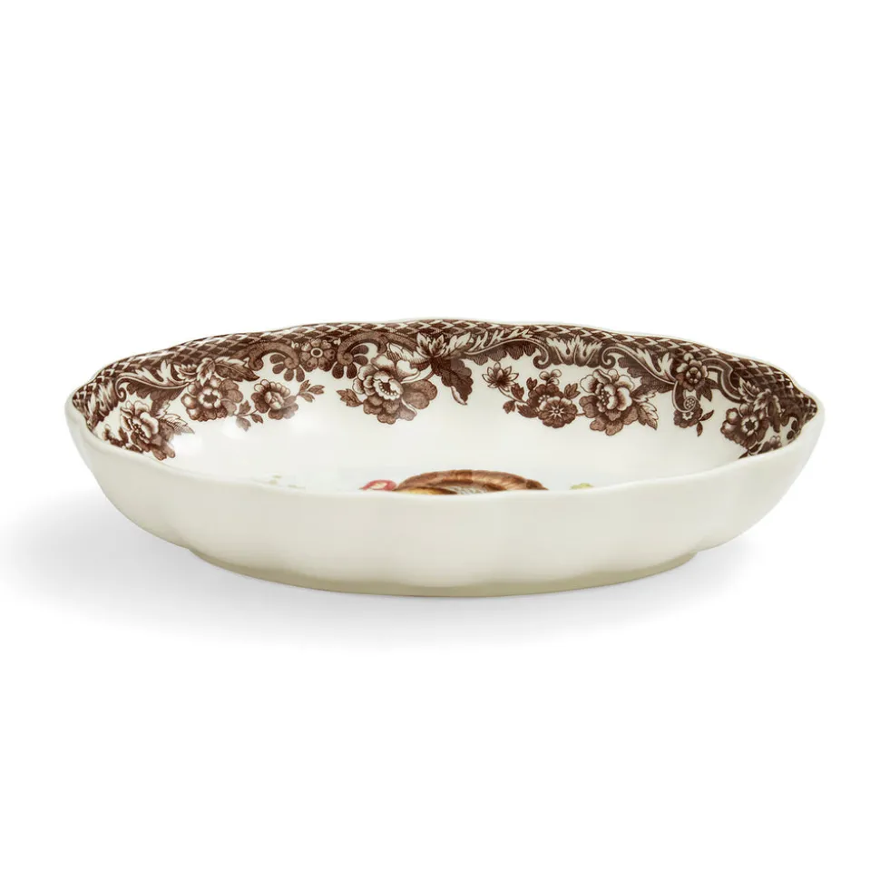 Founded by Josiah Spode in 1770, Spode has been producing the finest ceramics and celebrated designs in Stoke-on-Trent, England for 250 years. Spode is the authority on great British style bringing heritage style to modern day life. Add a unique touch to your dining setting with this charming Turkey Oval Fluted Dish. Now over 30 years old, the Woodland design showcases a sophisticated floral border from the archive with a detailed illustration of a turkey in the centre. The ideal piece for serving appetizers or desserts or using as a decoration for your sideboard to collect trinkets.