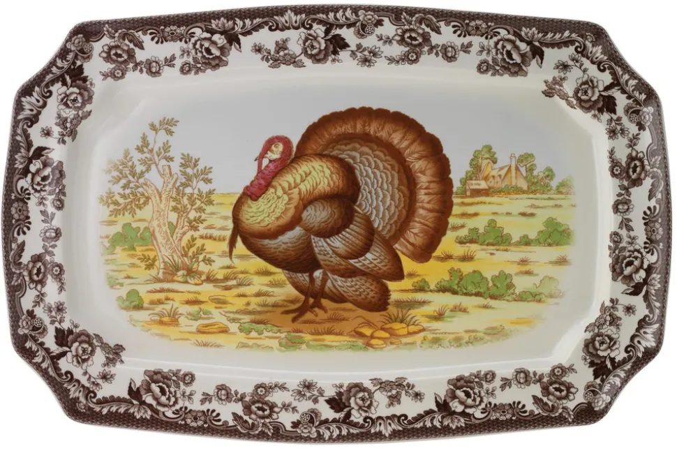 Founded by Josiah Spode in 1770, Spode has been producing the finest ceramics and celebrated designs in Stoke-on-Trent, England for 250 years. Spode is the authority on great British style bringing heritage style to modern day life. The quintessential symbol of our American holiday takes center stage in the Woodland Turkey Rectangular Platter that is ideal for serving appetizers, vegetables, and desserts. Made of easy entertaining, this platter is dishwasher, microwave, oven, and freezer safe.