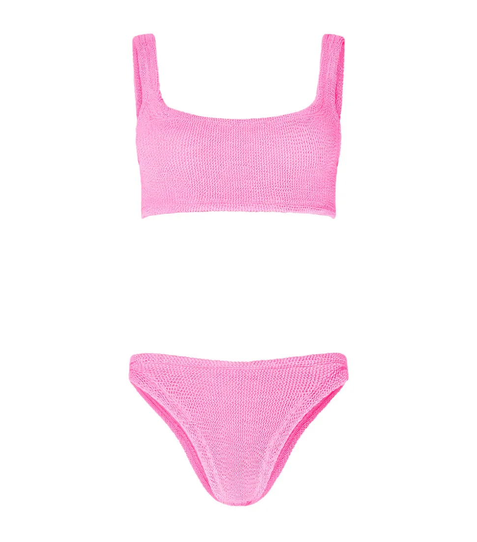 Originally born in 1984, Hunza G created its unique, signature Original Crinkle™ fabric. Their ‘80s roots bring a cool and contemporary twist to resort and beachwear in powerful hues. With a One Size fit made possible by fabric that flexes to sculpt and support all shapes, the way to these pieces is to wear it how you want to. Made for long days at the pool, the Xandra Bikini in Bubblegum features a square neckline and classic bottoms. This suit ticks all the boxes when it comes to coverage, support and a bright colorways.