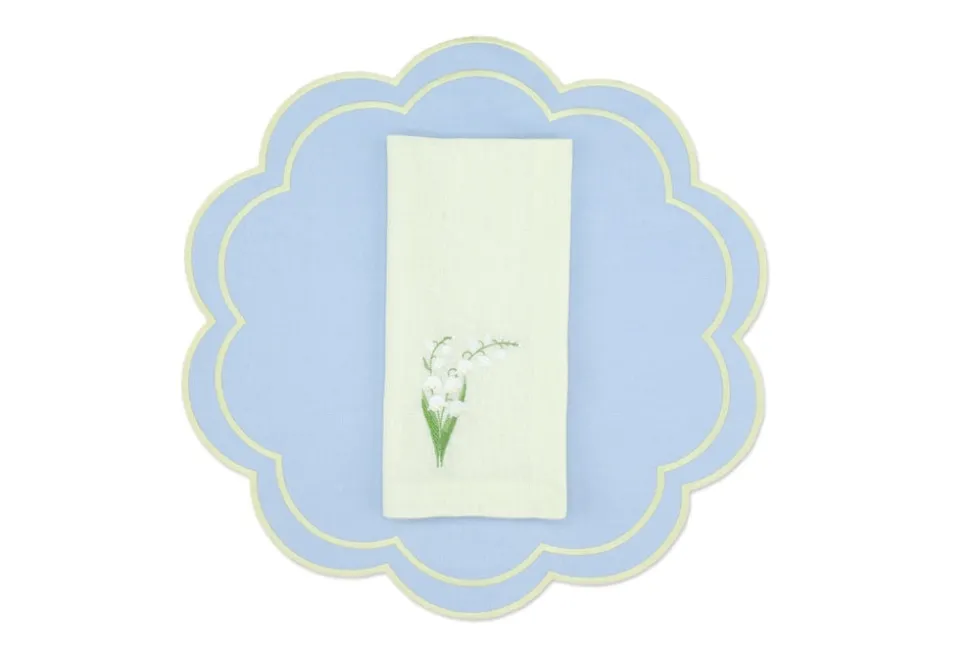 Founded in 2020 by three friends, TriChi looks to the intersection of the Mediterranean, Atlantic, and Anatolia for the inspiration for their superior clothing and homewares. Environmentally friendly manufacturing, the highest quality fabrics, and a passion for great design combine in the brand’s uniquely tasteful approach. TriChi’s napkin and placemat sets are exemplary tabletop additions, regardless of how formal or casual the affair. The Yellow Lily Linen Napkin and Bloom Linen Placemat, Set of 4 feature pastel blue placemats with a gently scalloped edge and white napkins adorned with a tasteful floral.