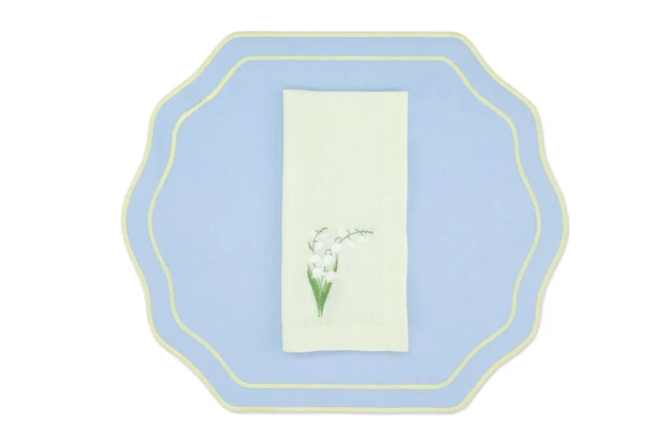 Founded in 2020 by three friends, TriChi looks to the intersection of the Mediterranean, Atlantic, and Anatolia for the inspiration for their superior clothing and homewares. Environmentally friendly manufacturing, the highest quality fabrics, and a passion for great design combine in the brand’s uniquely tasteful approach. TriChi’s napkins and placemat sets are exemplary tabletop additions, regardless of how formal or casual the affair. The Yellow Lily Linen Napkin and Stucco Linen Placemat, Set of 4, presents octagonal, pastel, blue placemats, featuring gently scalloped edges, and a delightful, yellow trim, as well as a floral motif on the napkin.