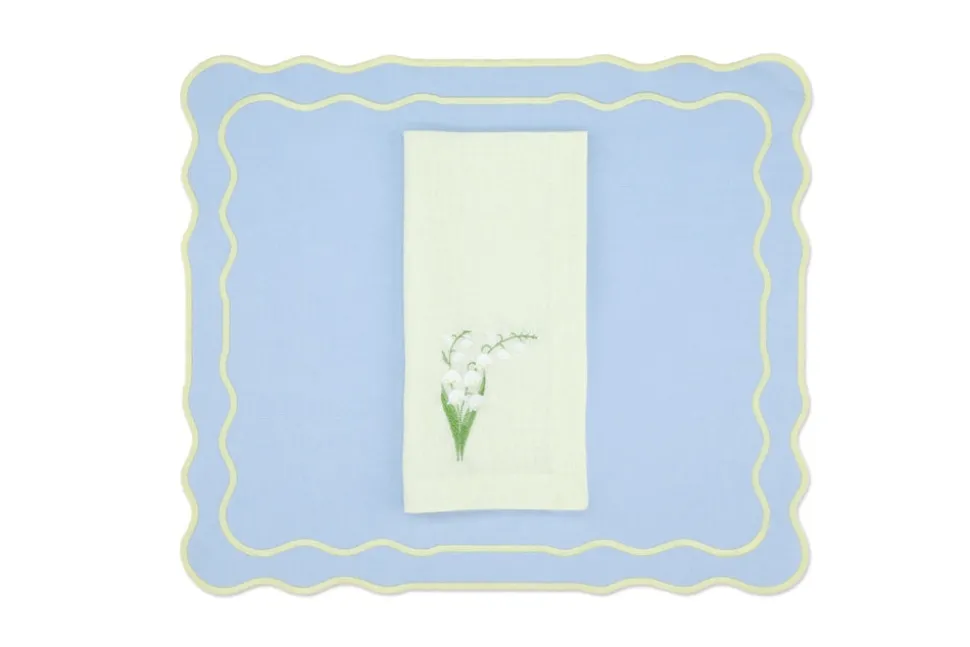 Founded in 2020 by three friends, TriChi looks to the intersection of the Mediterranean, Atlantic, and Anatolia for the inspiration for their superior clothing and homewares. Environmentally friendly manufacturing, the highest quality fabrics, and a passion for great design combine in the brand’s uniquely tasteful approach. TriChi’s napkins and placemat sets are exemplary tabletop additions, regardless of how formal or casual the affair. The Yellow Lily Linen Napkin and Tableau Linen Placemat, Set of 4, presents rectangular pastel blue placemats, featuring scalloped edges, and a delightful, yellow trim, as well as a floral motif on the napkin.