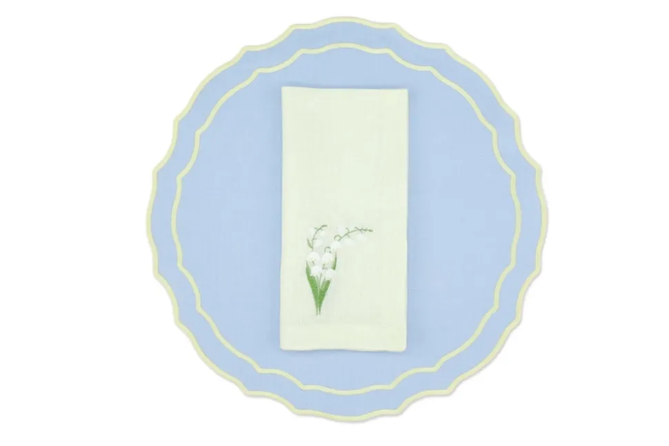 Founded in 2020 by three friends, TriChi looks to the intersection of the Mediterranean, Atlantic, and Anatolia for the inspiration for their superior clothing and homewares. Environmentally friendly manufacturing, the highest quality fabrics, and a passion for great design combine in the brand’s uniquely tasteful approach. TriChi’s napkin and placemat sets are exemplary tabletop additions, regardless of how formal or casual the affair. The Yellow Lily Linen Napkin and Vidro Placemat, Set of 4 feature pastel blue placemats with an angled, scalloped edge and white napkins adorned with a tasteful floral.