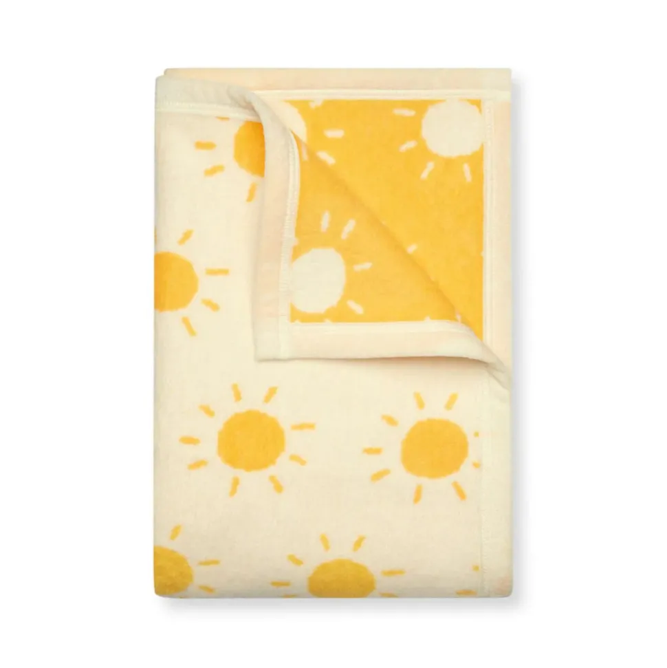 From a mother-daughter duo in Chappaquiddick, ChappyWrap makes soft, calming, easy to care for blankets. Crafted in a unique jacquard with a careful, long-lasting blend of plush, natural cotton, and high-performance fiber—Chappywrap pieces carry all the comfort and warmth of those blankets we remember from our youth. This blanket—available in 2 sizes—features charming, hand-drawn takes on the glowing sun that will brighten morning snuggles and afternoon naps with the little light of your life.