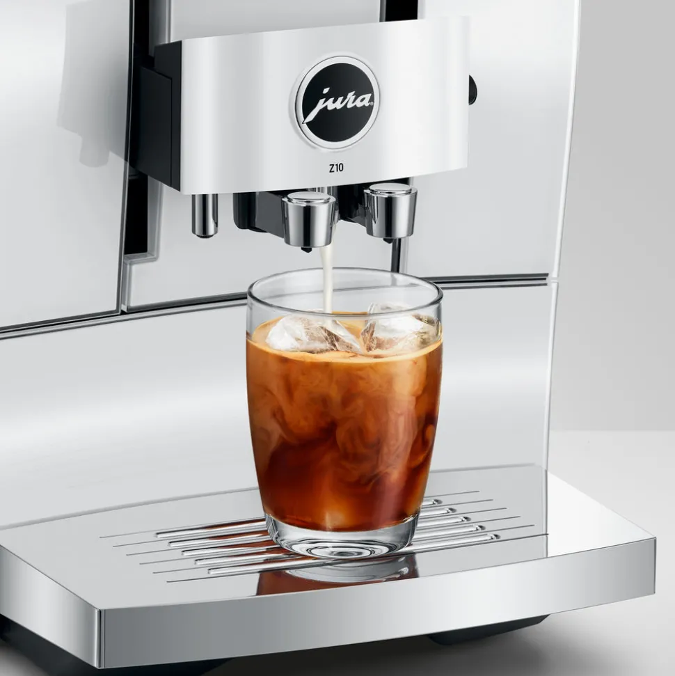 An innovation leader in automatic coffee machines, JURA brings new sophistication, quality, and ease of use to home-brewed espresso drinks. The Z10 Fully Automatic Coffee Machine in Diamond White offers the best of Swiss engineering to produce a wide range of specialty coffees. With the touch of a button you can have the full spectrum of hot drinks: from espresso to cappuccino to some warm milk for the kids’ hot chocolate. For ease of use, a high-resolution, color touchscreen provides intuitive navigation. And best of all, iced drinks are now on the menu. The Z10 introduces cold brew coffee drinks, thanks to its exclusive Cold Extraction Process. Using cold water pulsed at high pressure, coffee is extracted through a coarser grind, improving flavor and bouquet. Cafe quality coffee, hot or cold, at home or to go, is now yours whenever you want it.