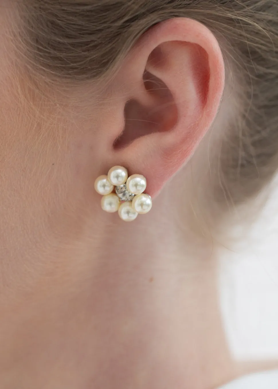 The Zaya Studs in Crystal are made by hand in New York, from 18K gold or rhodium-plated brass, crystals, and crystal pearls. They have a surgical-steel post, are nickel-free, and safe for sensitive skin.
