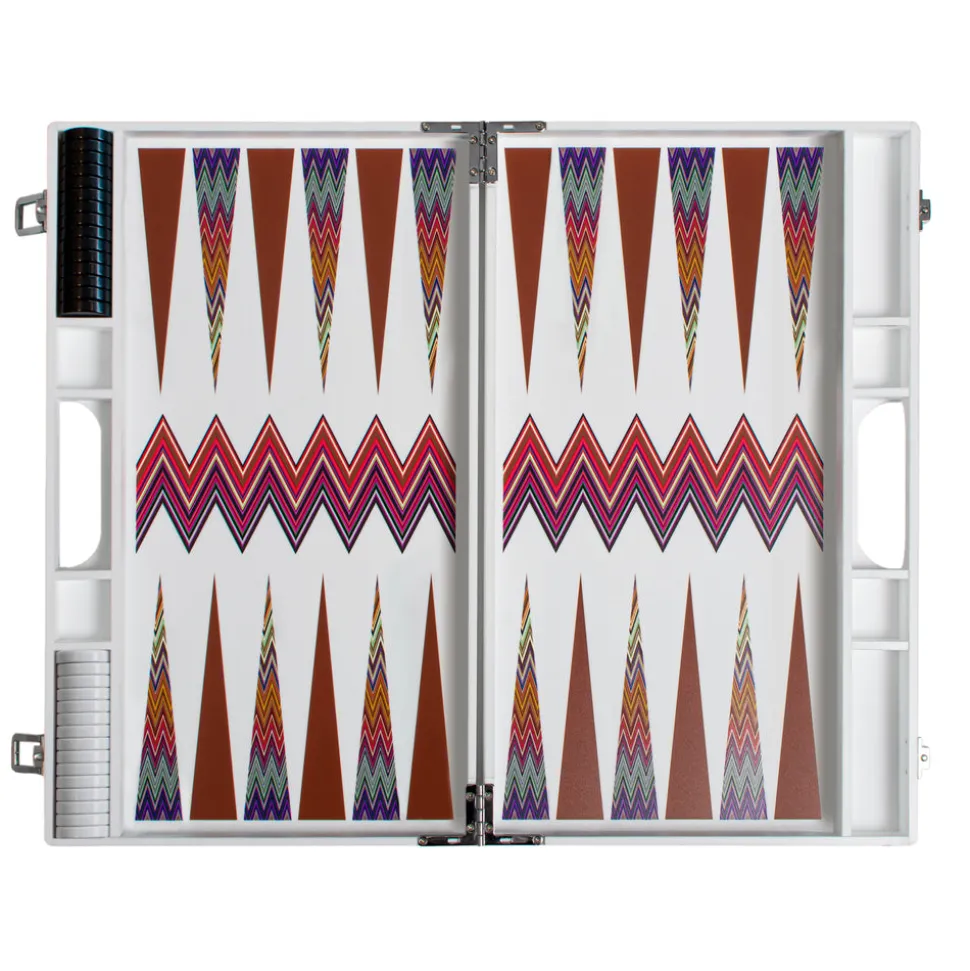 Maison Games makes beautifully crafted versions of your favorite games—backgammon, chess, connect four—that provide not only hours of fun and entertainment, but artful, colorful statements to any room in the home. Remnant of the patterns found in high-end fashion, the maximalist stripes in the Zig Zag Backgammon Board are at once sophisticated and standout, especially on the white background. We love this as a tabletop item.