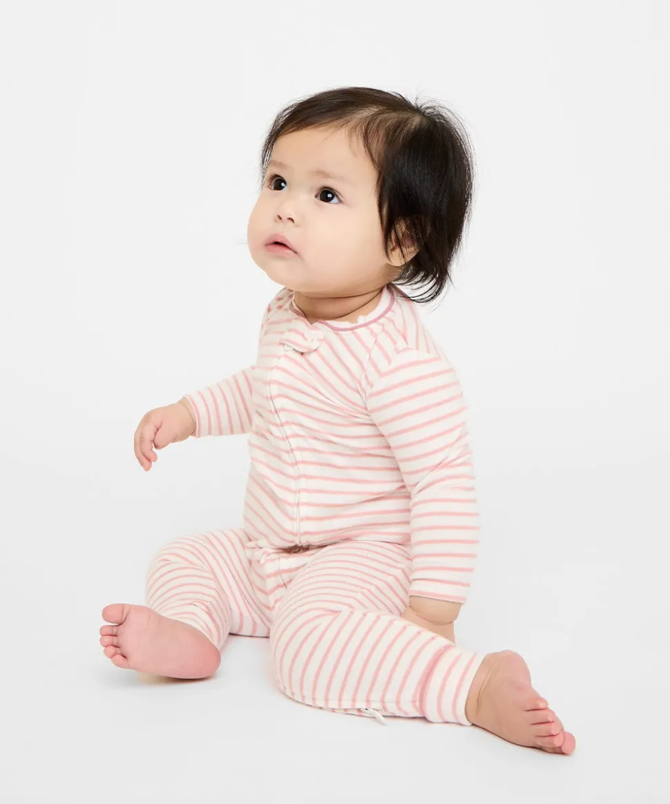 Oso and Me makes children’s clothing that’s easily worn, easily washed, and designed to make getting dressed fun. Sustainably crafted with growing kids in mind, these high-quality pieces are made with an eye for detail and built to last. The Ziggy Zip Romper in Dusty Rose Mini Stripe is the sweetest striped essential for little ones on the move. Crafted from 100% organic cotton jersey, it features an asymmetrical two-way zipper for quick, fuss-free changes and soft tonal piping for a refined finish. Ultra-soft yet durable, it’s gentle on sensitive skin and designed to withstand endless washes and wear.