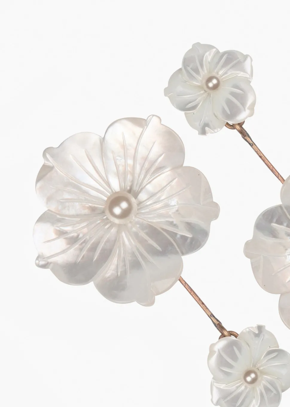 “Everything has a story to tell,” says Jennifer Behr, the founder of her namesake luxury hair accessory brand that has blossomed into one of New York City’s foremost ateliers for jewelry, as well as bridal. In every crystal, pearl and ribbon, you’ll find the utmost quality and a sense of romance, as each piece reveals a modern interpretation of centuries-old regalia. Crafted in gorgeous mother of pearl, the Zinnia Earrings, is handmade, with and elegant drop and two intricately carved mother of pearl flowers, with a smaller pearl center. It’s a sophisticated, stylish look, and we can’t look away.