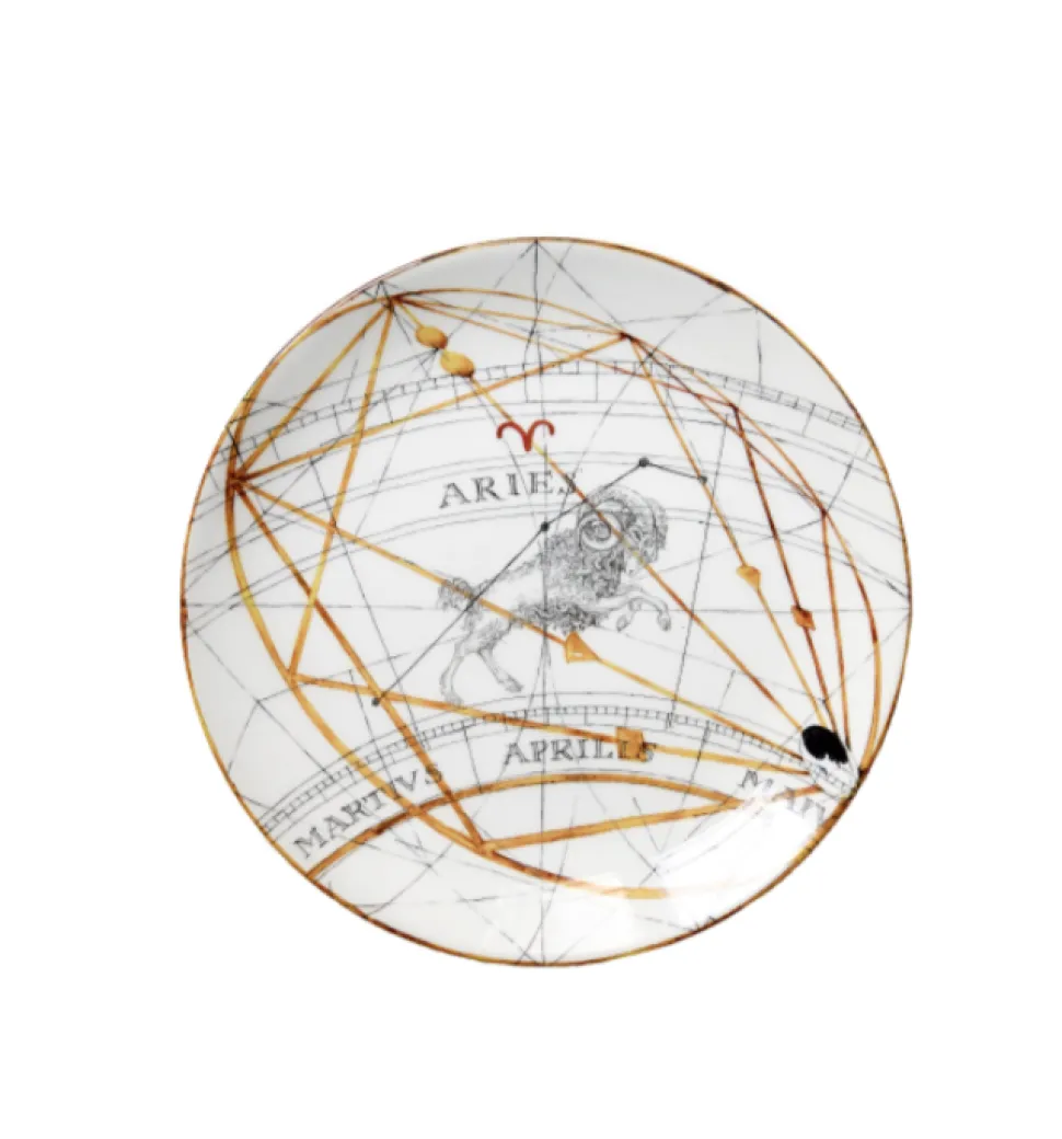 Illustrated with a different zodiac design, each of Costanza Paravicini’s striking Zodiac Dinner Plates is handcrafted and hand-decorated by artisans at the family’s ceramic workshop in Milan. The Capricorn illustration depicts the determined and ambitious Zodiac sign. With a glossy finish and gilded edges, this dinner plate will add sophistication to any modern place setting and is sure to be a conversation starter when you gather around the table.